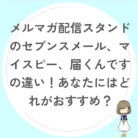 私は直近まで5年間ほど「マイスピー(PR)」、7年ほど前に「届くんです」を使っていました。 新しいメルマガ配信スタンド「セブンスメール(PR)」との違いをまとめてみました。 メルマガ配信スタンドごとの違い ※マイスピーは…