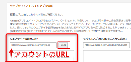 Amazonアソシエイトをするときは、アフィリエイトするXアカウントやブログURLを登録する必要があります。