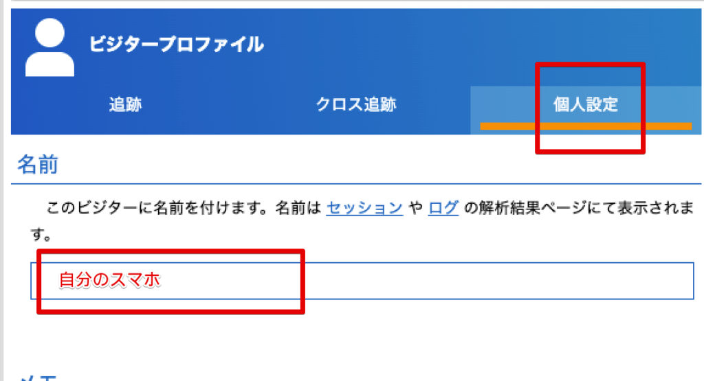 「個人設定」のタブを選び、任意の名前をつけます。
