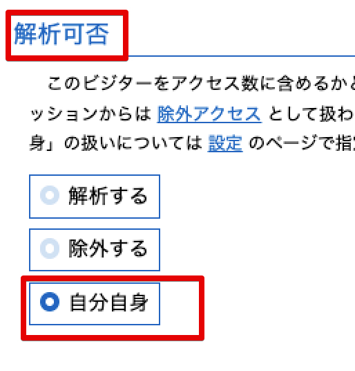 ※アクセス解析から自分のアクセスを除外したいときは、このページの見出しで解説しています。