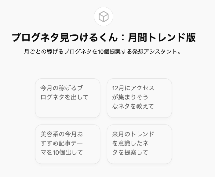 このGPTsには私は実践中のブログノウハウを組み込んで作ったオリジナルのものです。