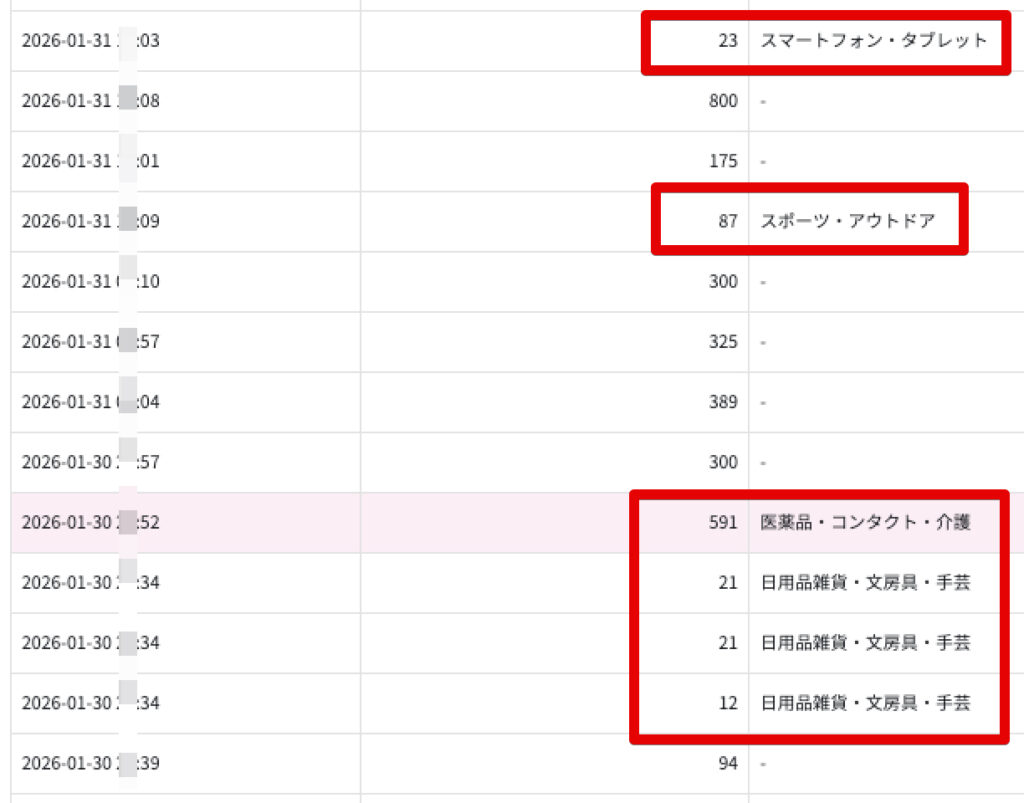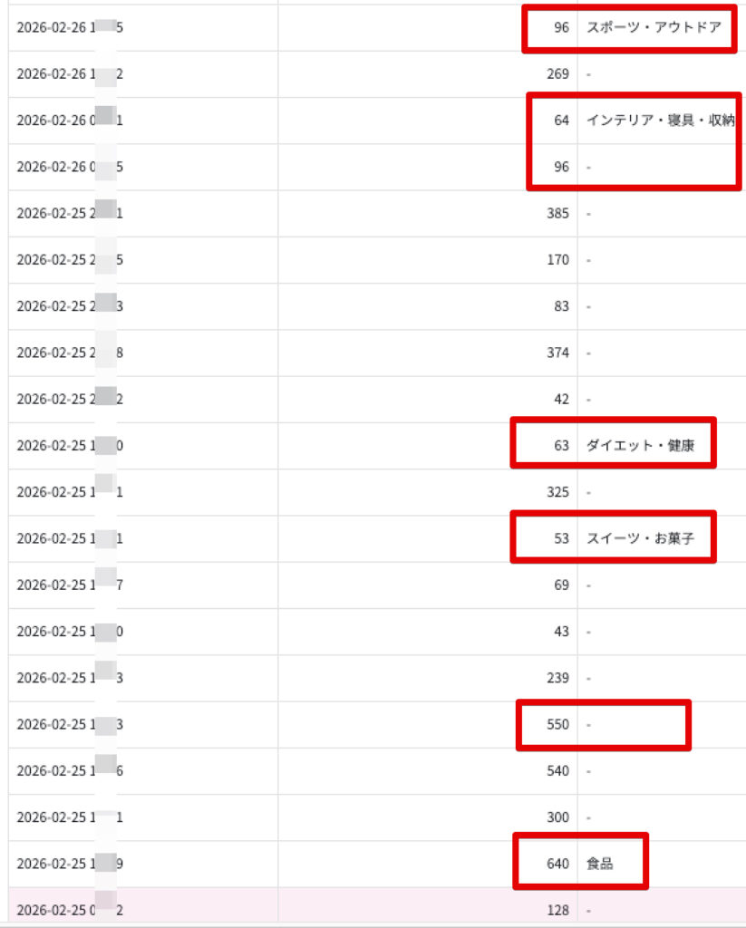 楽天は数十円〜200円くらいの報酬も多いですが、