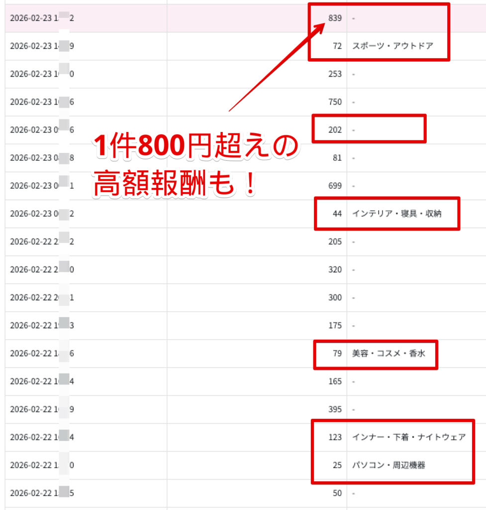 1件800円を超える高額報酬も発生しました。