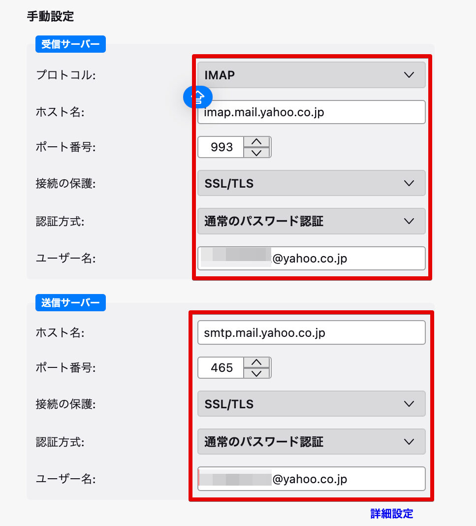 | サーバー名 | imap.mail.yahoo.co.jp |