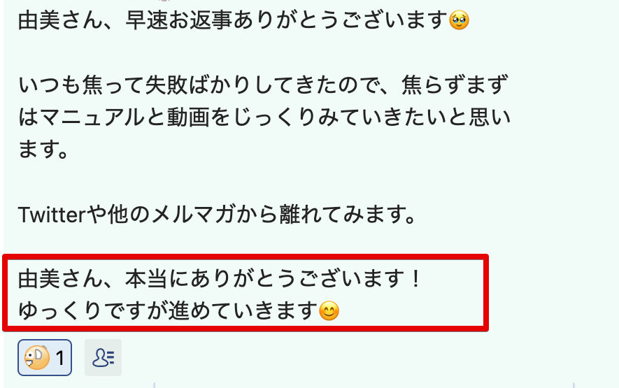でもゆみラボに入って、由美さんに直接質問したり、勉強会に参加したりすることで不安をひとつひとつ潰していくことが出来ました。