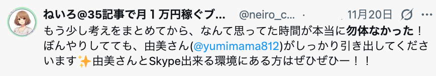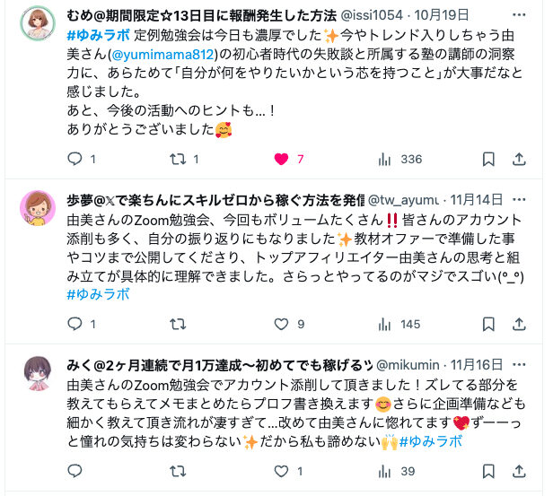 また由美やゆみラボについてXでポストしてくださったり、あなたの頑張りが伝わったら私から何度でもご紹介させていただきます。
