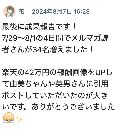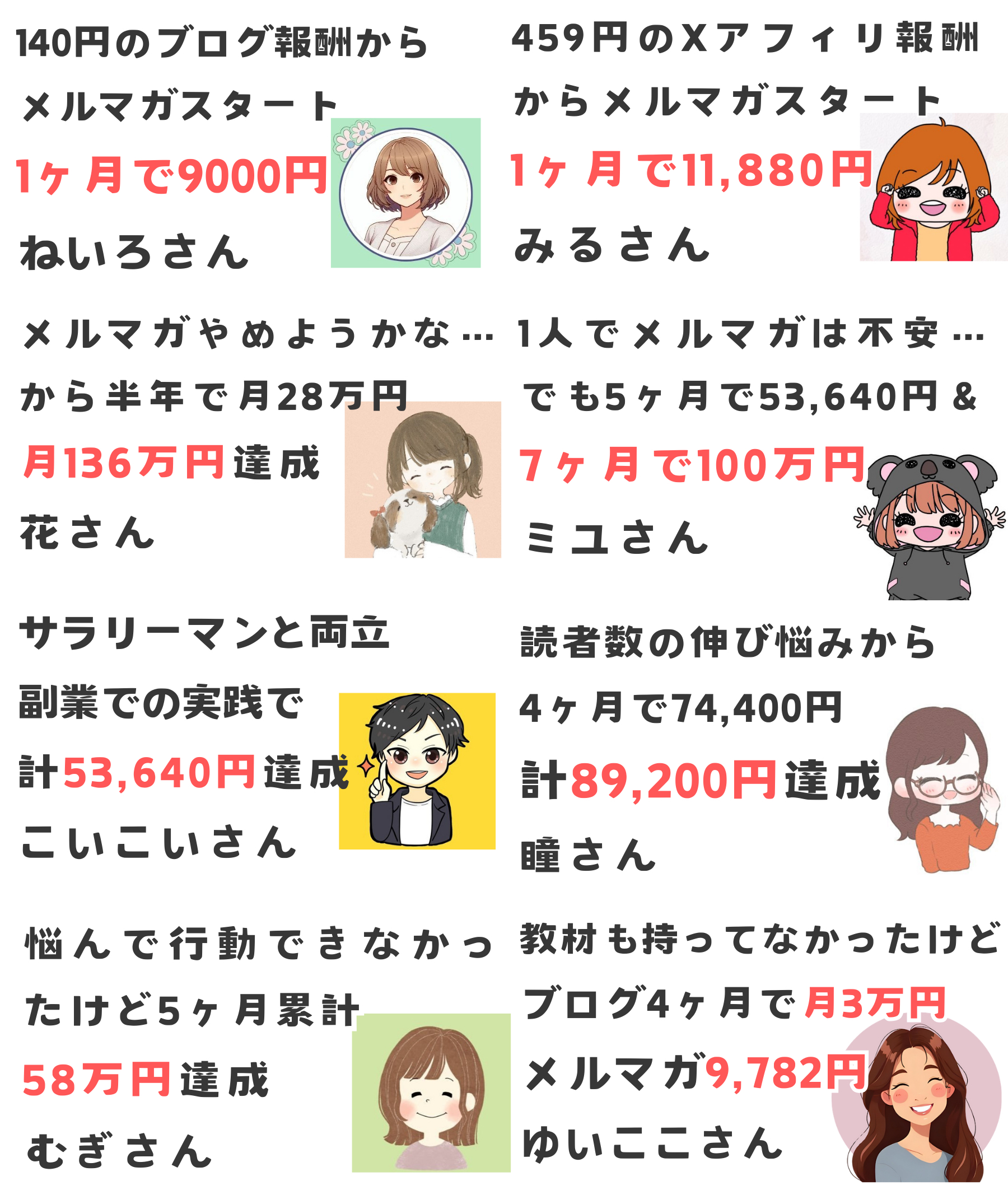 そして実際に、報酬が少ない時期からでも【大きな成果】を出している方が、本当にたくさんいます。