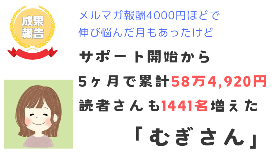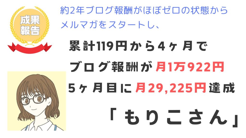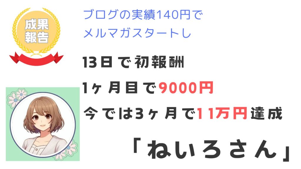 ◎ブログ報酬140円だった女性 → メルマガ5通目で初報酬1500円、1ヶ月で9,000円!