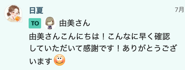 作業部屋に書き込むことなのかどうなのか、判断がつかないことも相談させていただきましたし、もっともっとどうでもいいようなことへも丁寧なお返事をいただいたのもとても嬉しかったです(*^^*)