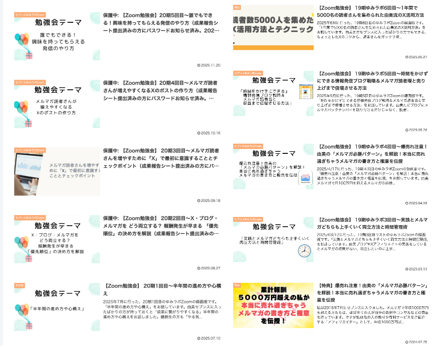 そして、今までの勉強会のアーカイブやセブンス実践中のお悩み、私のメルマガ報酬に繋がった成果までのすべてが詰まった「特典サイト」の閲覧権利もお渡しいたします。