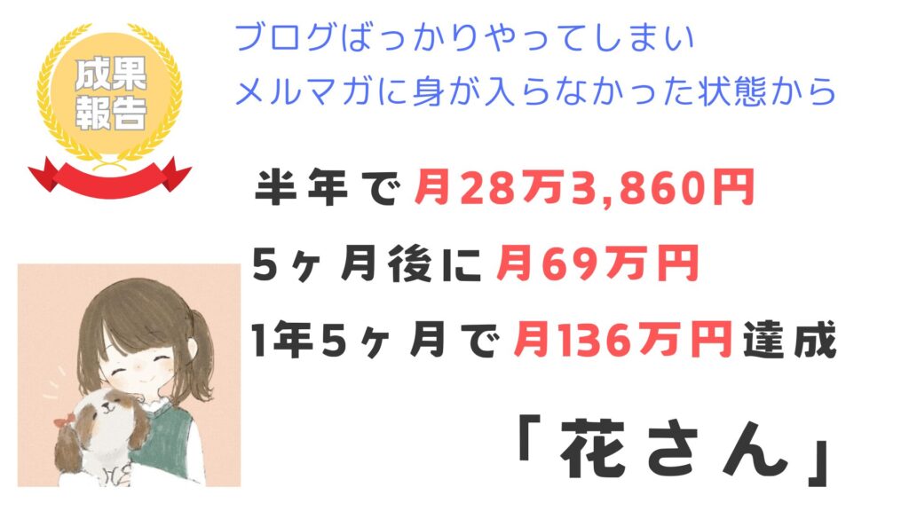 ◎ブログ報酬1000円ほどだったママ → メルマガ1ヶ月目で20万円超え!1年間で累計200万円以上!