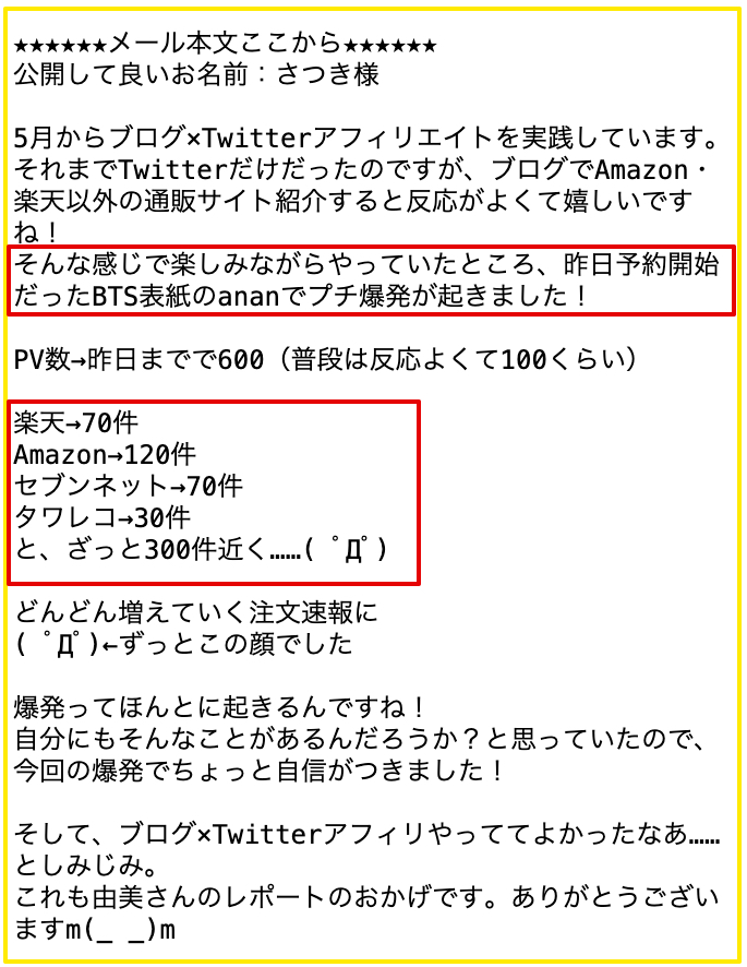 えいじ新聞でTwitterアフィリエイトの情報発信をされているえいじさんからもこんな感想をいただきました。