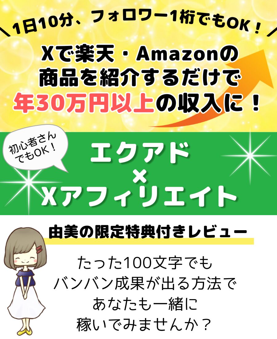『X(旧Twitter)アフィリエイト』の手法がエクアドには書かれています。