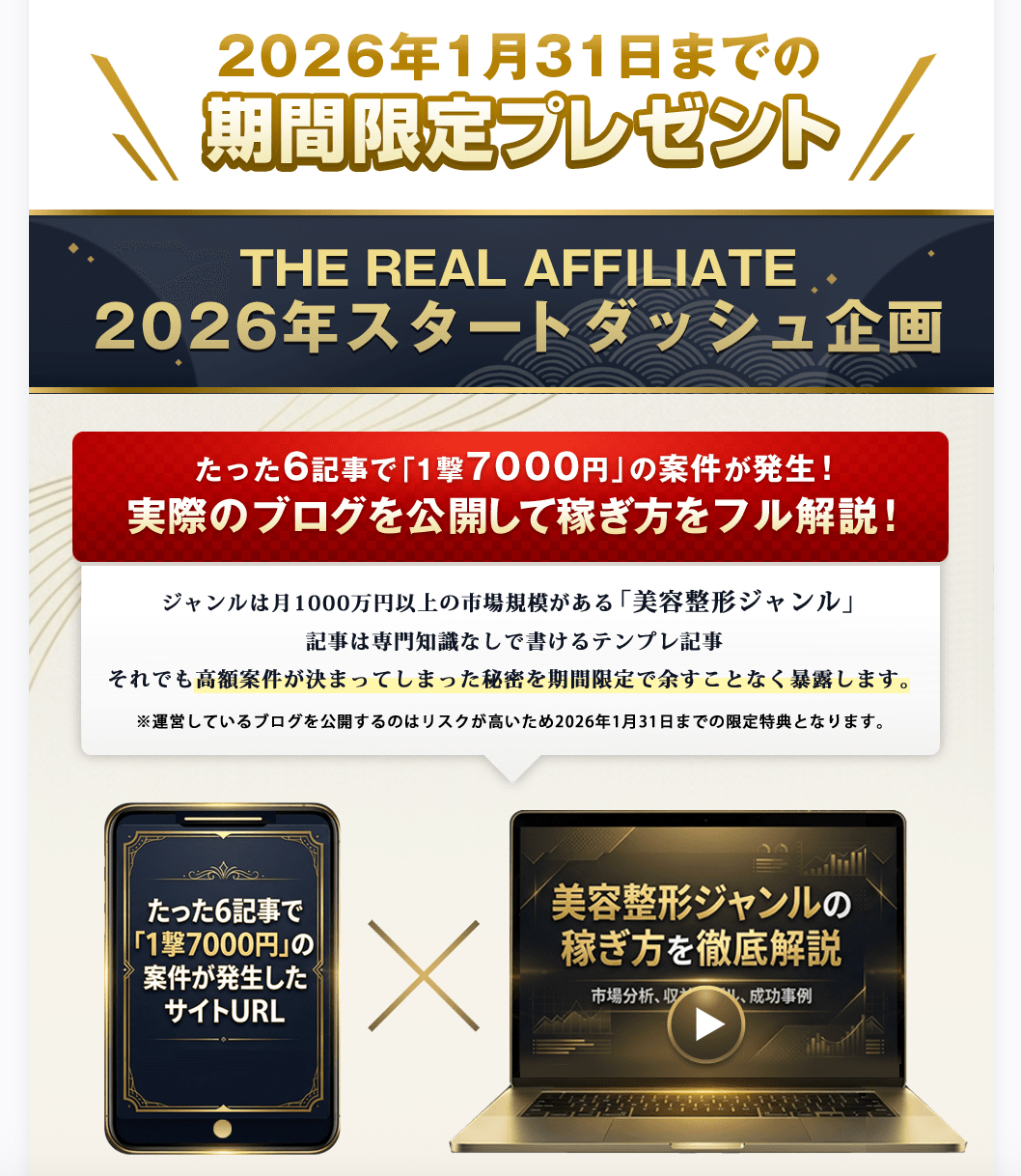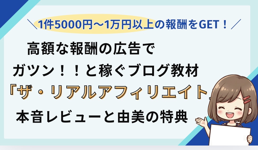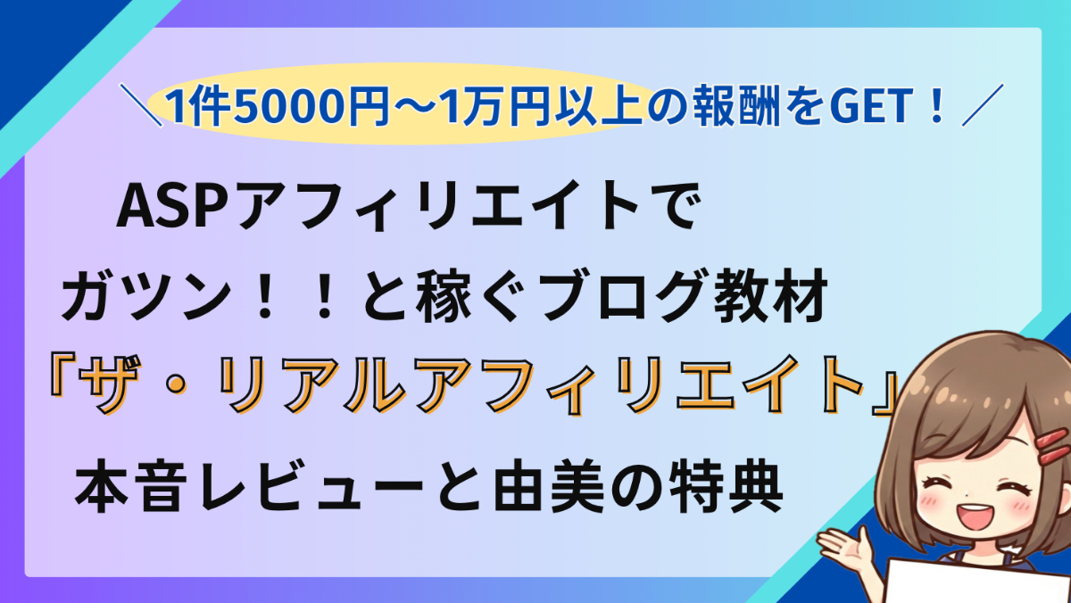 ザ・リアルアフィリエイトは、ブログで月100万円以上狙えるASPアフィリエイトに特化した教材です。
