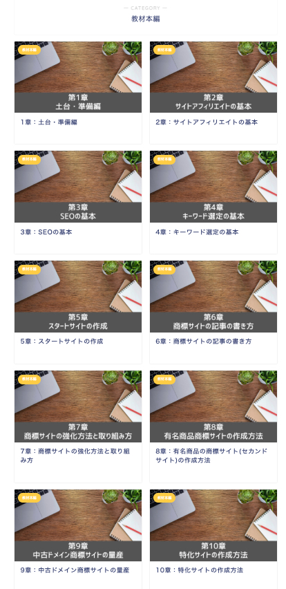 でも、リアルアフィリエイトなら、このように「章立て」になっているので、1つずつ進めていけば大丈夫。