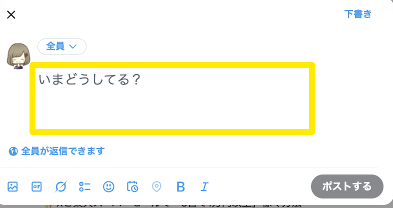 規約の詳細はこちらこれで右下にある「ツイートする」をクリックすると投稿(ツイート)できますよ。